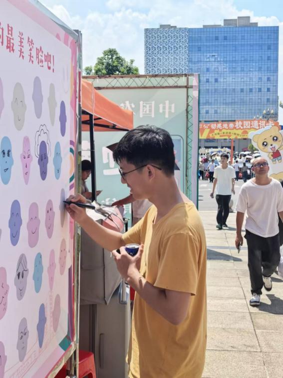 9月1日至2日新生报到期间,我校大学生心理健康自助部在学生中心楼前开展了2025迎新活动。本次活动共计300余名新生参与。