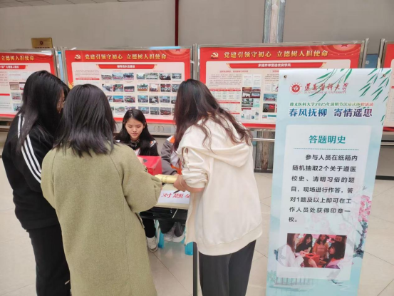清明节是中国的传统节日,国人自古就有礼敬祖先、慎终追远的习俗。遵义医科大学的发展离不开先辈们的兢兢业业、无私奉献,明德笃学,求是致用。为传承遵医精神,传承红医精神,传承中华民族传统文化,赓续遵医红色血脉,4月4日上午,我校办了“春风抚柳,寄情遥思”清明节沉浸式体验活动。本次活动由学生工作部(处)主办,学生事务服务中心承办,全校共计600余名学生参加。